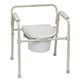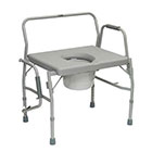 The ProBasics Bariatric Drop Arm Commode features heavy-duty steel construction for increased durability and drop arms for ease in transferring to and from the commode. The large, comfortable snap-on seat and non-marring rubber tips provide additional convenience. 650 ib. weight capacity.